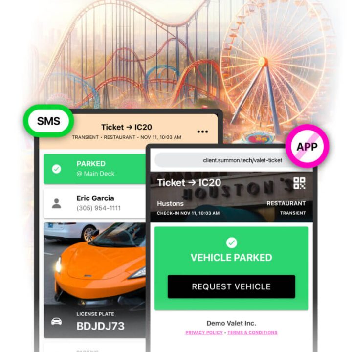 Control amusement park valet operations and increase revenue with our easy-to-use valet parking app. Let guest request their vehicle ahead, pay and even tip through their mobile devices avoiding long wait lines in bad weather.