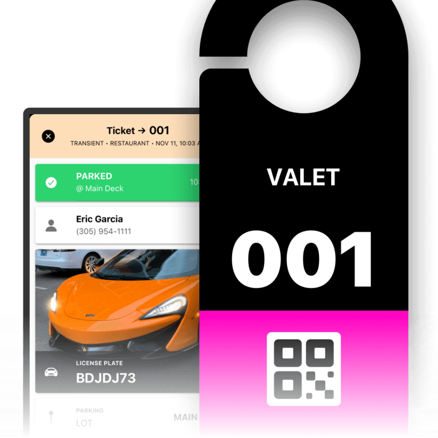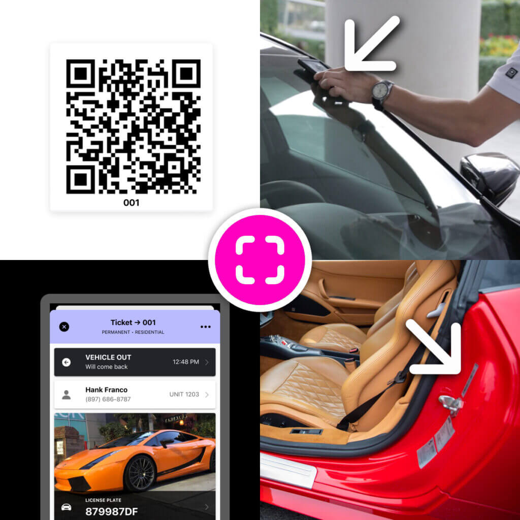 Valet scans QR on re-usable tag, sticker or digital ticket for seamless check-in.
