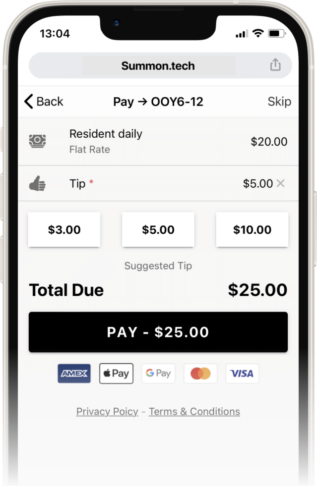 Speed up office and commercial parking with Parkmate. Guests can request, pay, and tip using digital web tickets.
