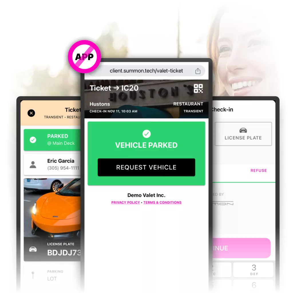 Valet guest are sent an SMS with a link to a mobile-friendly web ticket.